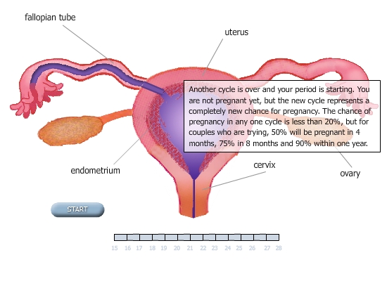 Below you will find animations of the process of ovulation showing how conception happens and why it often fails. These animations show normal ovulation and ovulation followed by fertiliation. The last two animations (coming soon) will show the two most common reasons why you don't get pregnant even if you time everything just right. These reasons are failed implantation and chemical pregnancy (extremely early miscarriage).